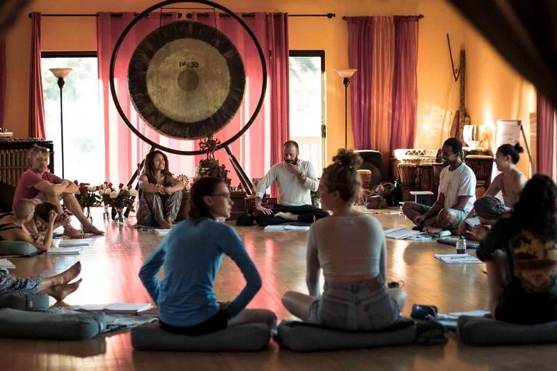 A normal day can start with morning sadhana. Engaging in yoga, meditation, chanting, and arati, similar to a temple. After that, start listening to lectures on methodology, philosophy, or anatomy. Complete awareness is achieved through practical instruction and afternoon posture workshops. Relaxing yoga, journaling, song circles, and therapeutic events will be available in the evenings. Absolute stillness, meditation, and nature are all connected.